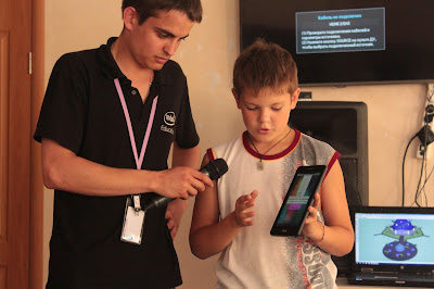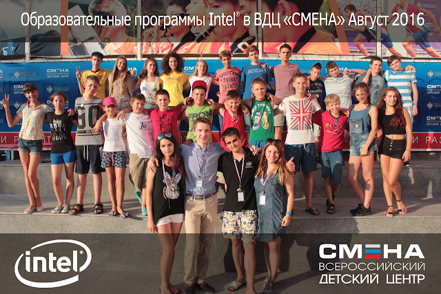 Раскрываем таланты в "Смене"! Оксана Емельянова / 22.08.2016 «Талант – безупречный подарок: кому-то дано, но ни у кого не отобрано»Александр Вяземка Этим летом мне посчастливилось побывать во всероссийском детском центре «Смена» города Анапа по приглашению и спонсорской поддержке компании Intel. Именно здесь, в одном из лучших детских и молодёжных оздоровительно-образовательных центров России, мы с коллегами работаем как преподаватели, ведущие курсы по программированию. Весной мы окончили курс у Марины Александровны Ливенец по программированию мобильных приложений в среде MIT App Inventor. А уже 12 августа я, Ильхам Галиуллин и Татьяна Леснова прилетели в ВДЦ «Смена» к детям, глаза которых мы «зажгли» при создании своего приложения для гаджета на ОС Android! Наша заключительная, третья смена проходит с 12 по 22 августа. Всего мы провели 8 занятий длительностью 1,5 часа каждое, 5 из которых совместная работа, 2 – выполнение итогового проекта и 1 – защита своих приложений. Как только прибыли в «Смену», мы начали активно осваиваться, изучив территорию центра и свои рабочие кабинеты. Мы подготовили аудиторию к первому занятию, заранее создав для детей Google-аккаунты и картотеки, где были готовы обрезанные картинки, звуки и иконки для приложений.Также уже была готова таблица успеваемости с названиями приложений по курсу. Исходя из анкет детей и их предпочтений, были сформированы группы, занятия которых стартовали с 13 августа.Курс "Программирование мобильных приложений" в среде MIT App Inventor помогает понять, как создаются и программируются те самые приложения, которые есть у каждого пользователя того или иного гаджета. «Цепляет» именно то, что всем интересно создать свое приложение, которое будет полезно как тебе, так и окружающим. После знакомства всех участников курса с ведущими (Татьяна Леснова, Оксана Емельянова, Ильхам Галиуллин), мы провели собеседование (финальный отбор) с теми ребятами, которые были отобраны на курс. Ребята очень волнительно отнеслись к этому отбору и были очень рады, когда узнали, что они стали его участниками. После знакомства всех участников курса, обсуждения нашей деятельности и результатов курса, началось знакомство с интерфейсом онлайн-среды MIT App Inventor. Интерфейс достаточно простой и понятный каждому пользователю, поэтому никаких проблем с работой программы не возникало. Подробнее о нашей работе в рамках курса можно посмотреть в блоге.День за днем ребята все больше увлекались программированием приложений и уже подумывали, что можно «сотворить» для итогового проекта. Каждый день мы наблюдали на каждом лице детей улыбку, старание и настойчивость. Видео рабочих будней в Смене на нашем курсе Мероприятие проходило совместно с курсом «3D моделирование». Слушатели курсов представляли свои проекты перед членами жюри и своими сверстниками, которые влияли на определение лучших проектов. Жюри получило столько ВОСТОРГА от представленных работ детей, что, наверное, наши лица выдавали радость и волнение за них. СТОЛЬКО полезных, качественных и креативно оформленных приложений мы увидели… Наша задача выполнена, ни один ребенок не скучал на занятиях, все были увлечены курсом, поэтому с наслаждением и ноткой грусти (от того, что курс закончился), мы направились на награждение.Вечером состоялось торжественное награждение, фотосессия и н