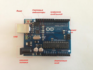 Программирование на Arduino. ч.2 Установка и настройка agsidenko's blog / 06.08.2013 На следующем этапе работы с Arduino нам необходимо установить программное обеспечение для его нормального функционирования. Сделать это можно, скачав последнюю версию программы с сайта. На момент написания поста это модуль версии 1.0.5 (размер 53 Мб, есть и beta 1.5.1., но это мы в расчет не берем). Вполне может быть, что вы уже будете ставить другую версию . Также следует сделать пометку, что я устанавливаю версию для работы в Windows, но есть Mac и Linux, скачать их можно все с той же страницы.Arduino Uno (это наш), Mega, Duemilanove и Arduino Nano получают питание автоматически от любого USB-подключения к компьютеру или другому источнику питания.Подсоедините плату Arduino к вашему компьютеру, используя USB-кабель. Должен загореться зеленый светодиод питания, помеченный PWR. После установки драйверов необходимо выполнить следующие действия, подробно описанные здесь.Далее открываем среду разработки (скорее всего, ярлык на рабочем столе или через Все программы меню Пуск).Давайте попробуем запустить один из примеров. Найти можно Файл-примеры-01.Basic-BlinkВыберите устройство последовательной передачи платы Arduino из меню Tools | Serial Port. Вероятно, это будет COM3 или выше (COM1 и COM2 обычно резервируются для аппаратных COM-портов). Чтобы найти нужный порт, вы можете отсоединить плату Arduino и повторно открыть меню; пункт, который исчез, и будет портом платы Arduino. Вновь подсоедините плату и выберите последовательный порт. У меня оказался COM6.Загрузите скетч в Arduino:Теперь просто нажмите кнопку «Upload» в программе – среде разработки. Подождите несколько секунд – вы увидите мигание светодиодов RX и TX на плате. В случае успешной загрузки в строке состояния появится сообщение «Done uploading (Загрузка выполнена)».Несколько секунд спустя после окончания загрузки вы увидите, как светодиод вывода 13 (L) на плате начнет мигать оранжевым цветом. Поздравляю, если это так! Вы получили готовый к работе Arduino!Пример довольно простой, но нам необходимо убедиться в работоспособности нашего микроконтроллера.На первый взгляд, все, что нам будет достаточно - это подсоединить микроконтроллер к компьютеру и начать программировать, но это еще не все. Нам необходимо изучить что из себя представляет микросхема. Набросал небольшую схему, чтобы дать более детальное представление:Так будет понятнее, о чем пойдет речь дальше. По мере необходимости буду добавлять в эту схему элементы. arduino информатика микроконтроллер школа